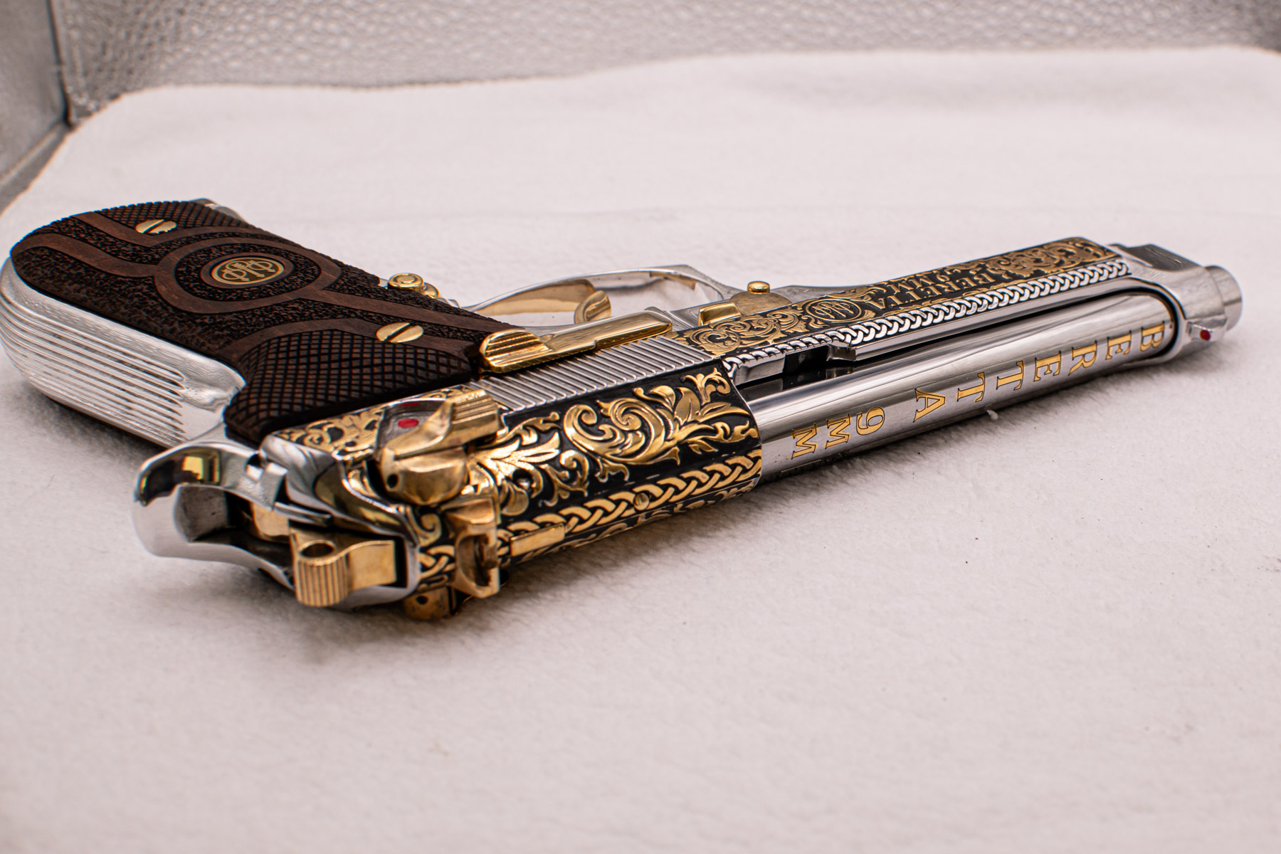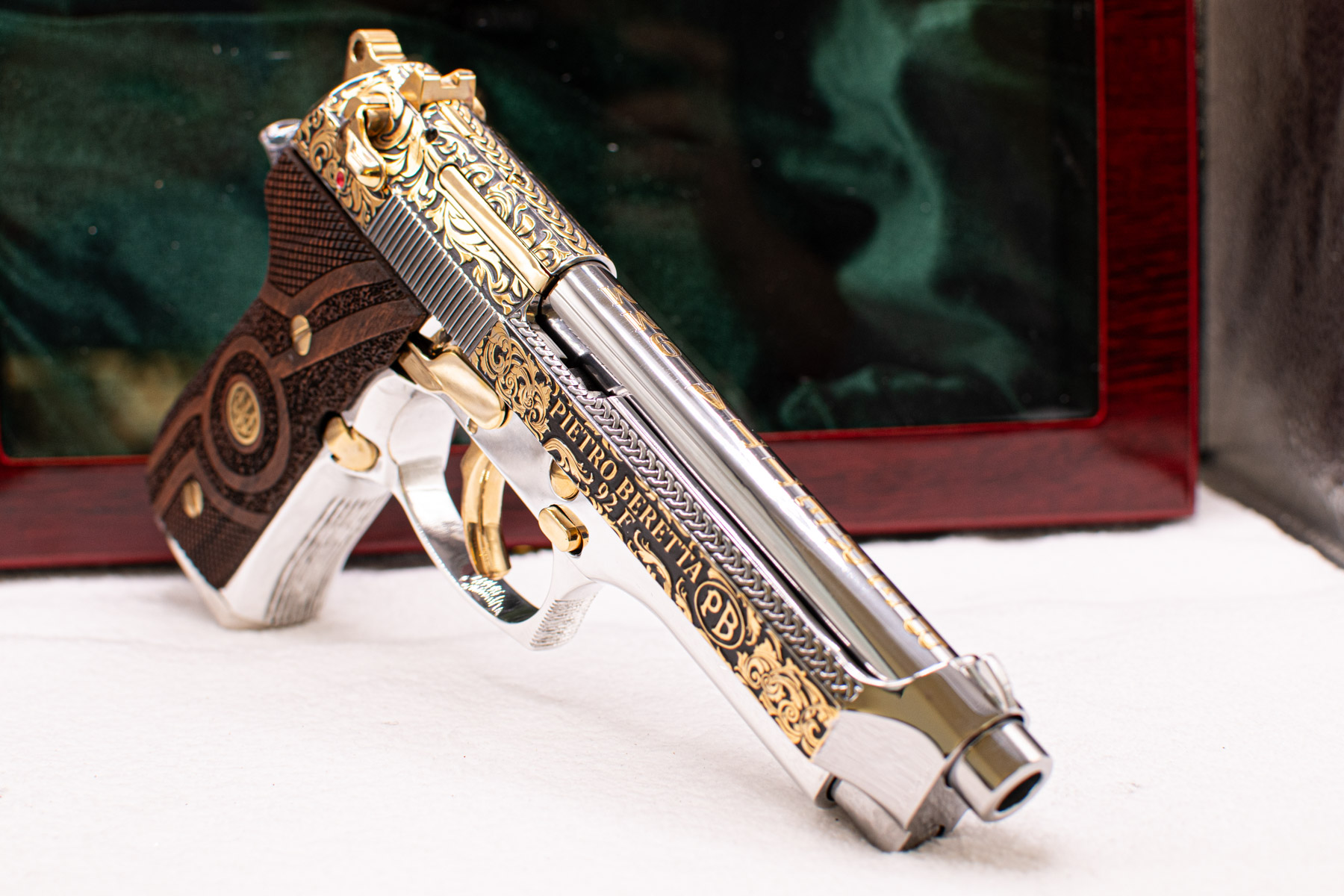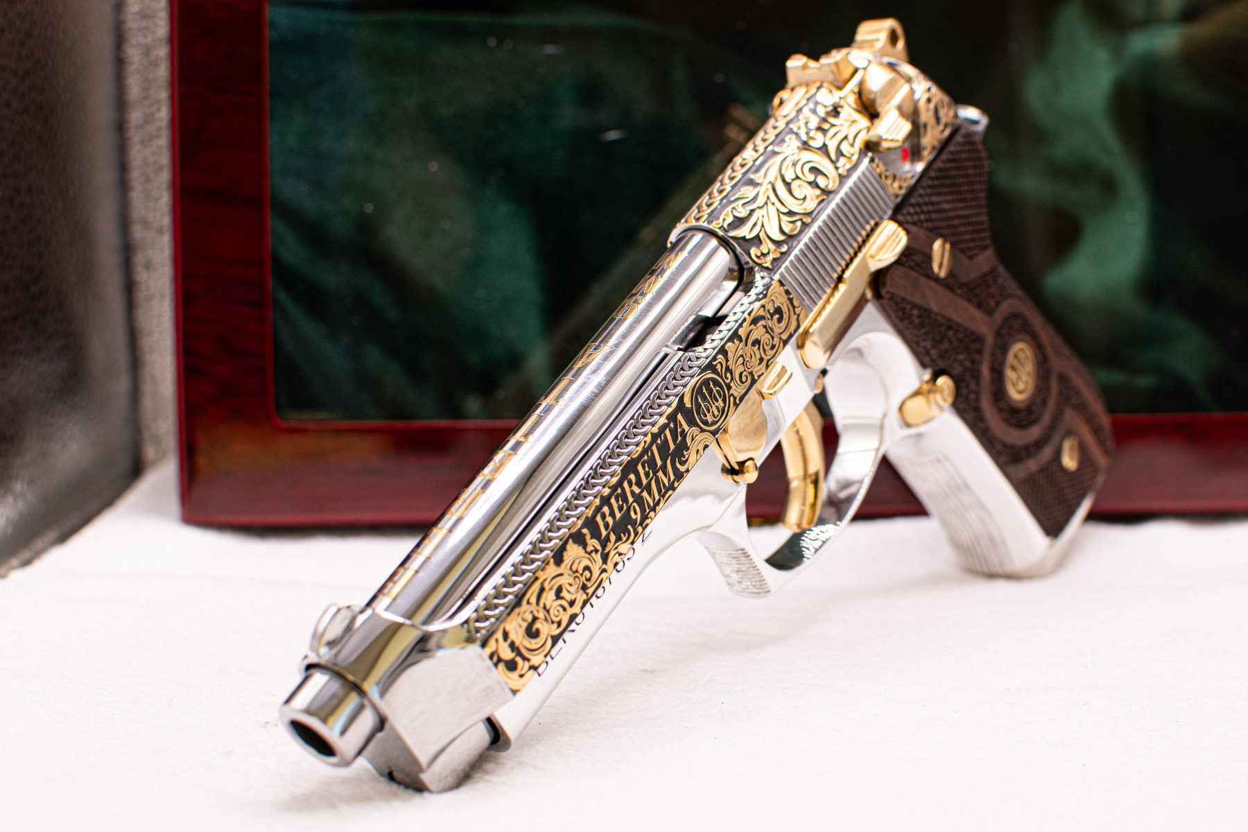 Every element reflects exclusivity and precision: from the all-metal construction to the magazine enhanced with a gold-plated base. The combination of artistry, luxury, and performance makes this Beretta not just a firearm, but a prestigious statement piece worthy of any elite collection.