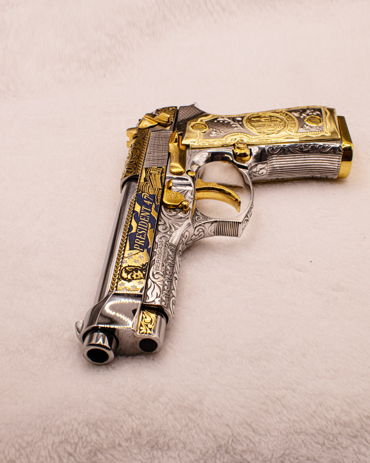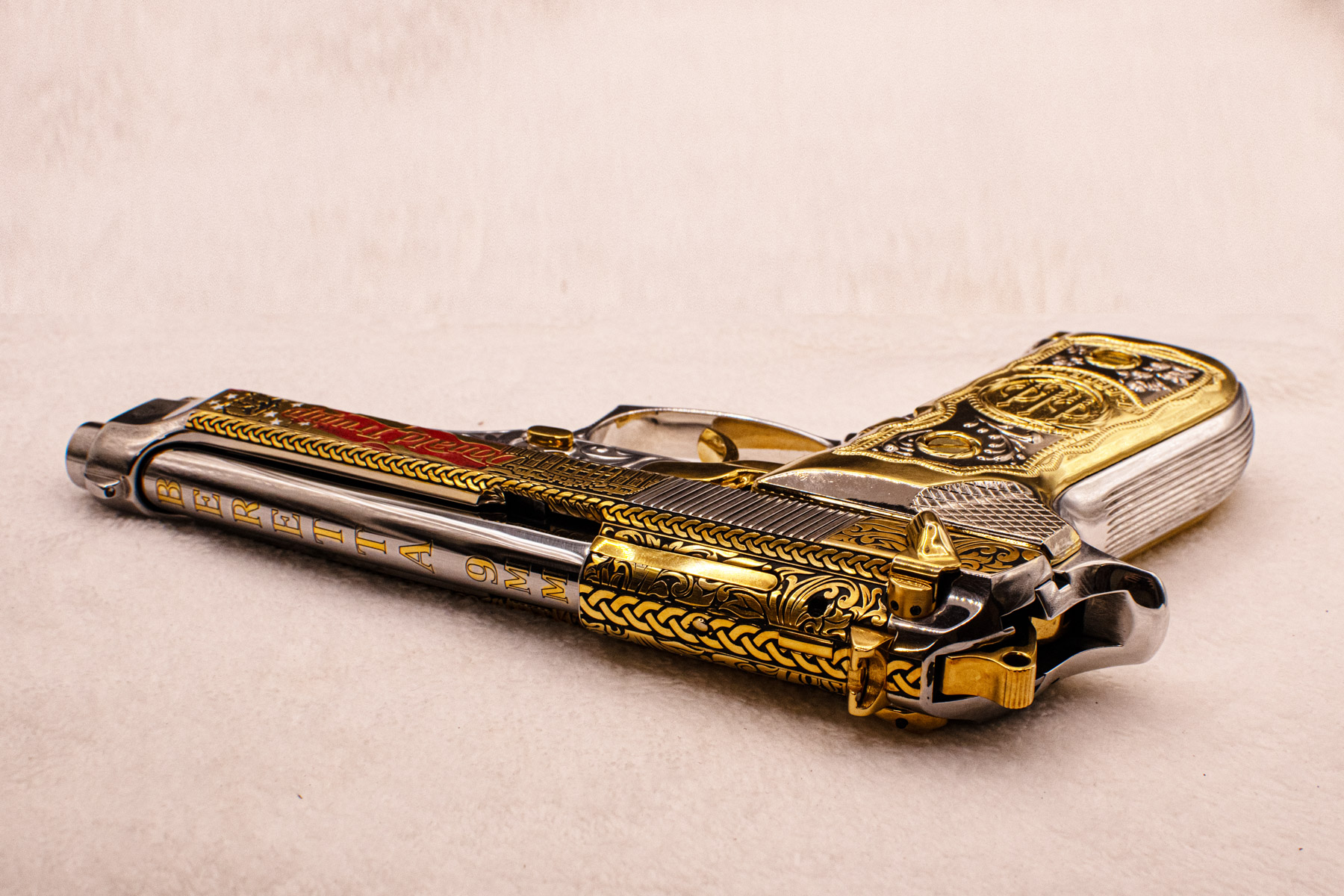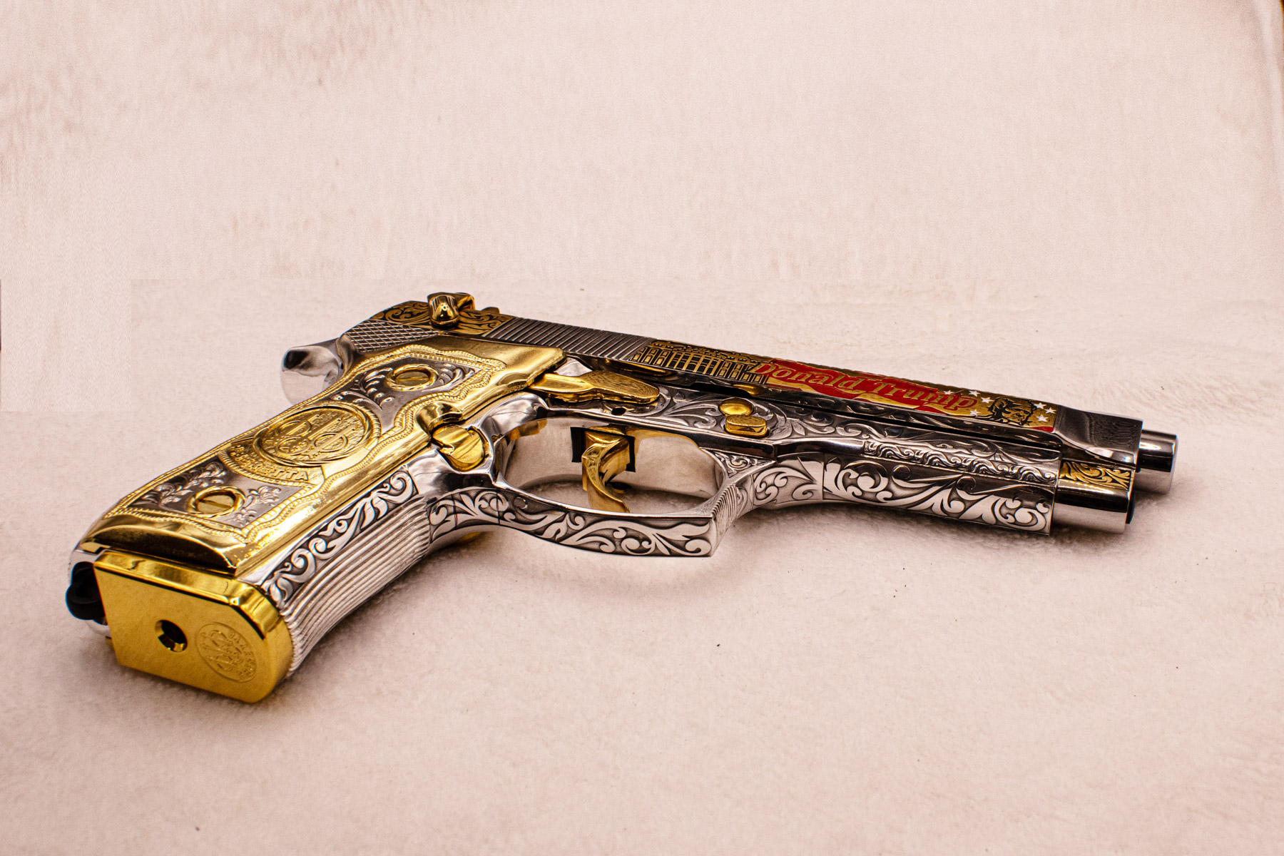 Every element reflects exclusivity and precision: from the all-metal construction to the magazine enhanced with a gold-plated base. The combination of artistry, luxury, and performance makes this Beretta not just a firearm, but a prestigious statement piece worthy of any elite collection.