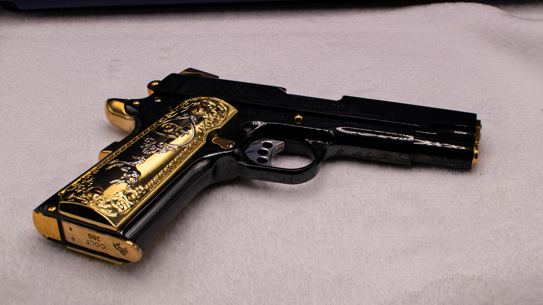 Every element has been crafted with precision: custom grips embossed with the Colt logo, and a magazine bottom adorned with a golden finish. The result is not just a firearm, but a true work of art—a statement piece that will elevate and enrich any collector’s showcase.