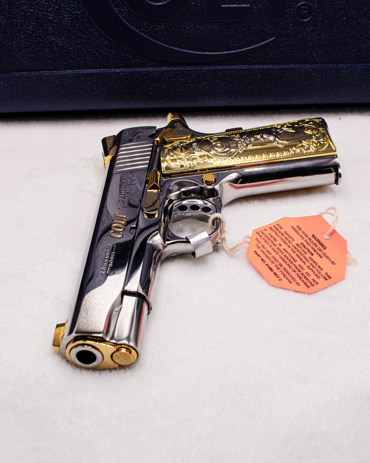 Every element has been crafted with precision: custom grips embossed with the Colt logo, and a magazine bottom adorned with a golden finish. The result is not just a firearm, but a true work of art—a statement piece that will elevate and enrich any collector’s showcase.