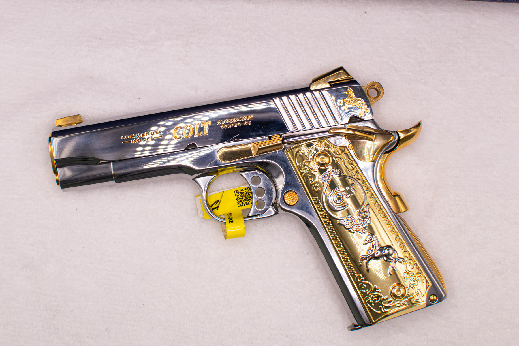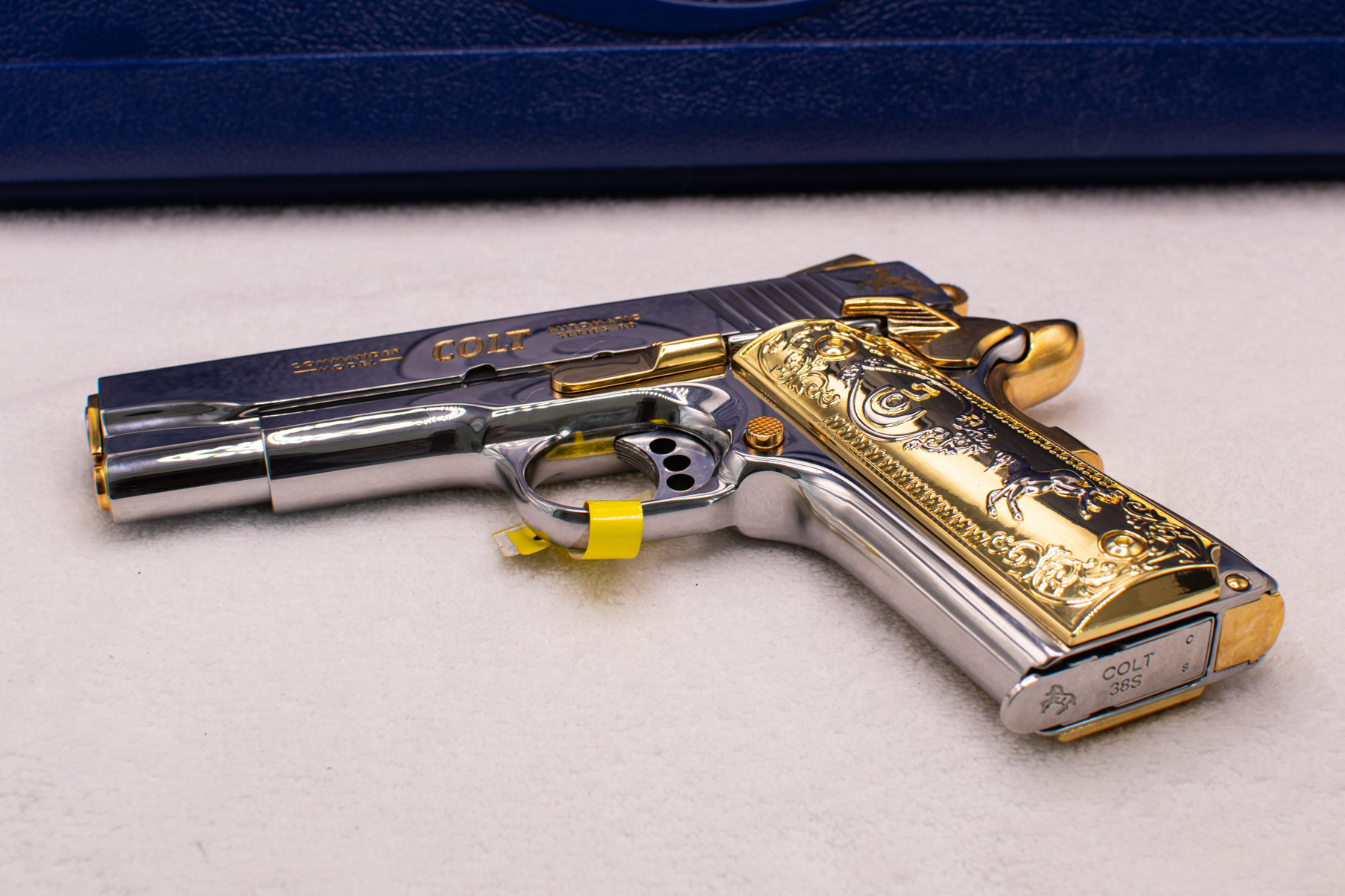This one-of-a-kind Colt  accentuated by 24-karat gold-plated details. The surface is finished with a high-gloss polish,