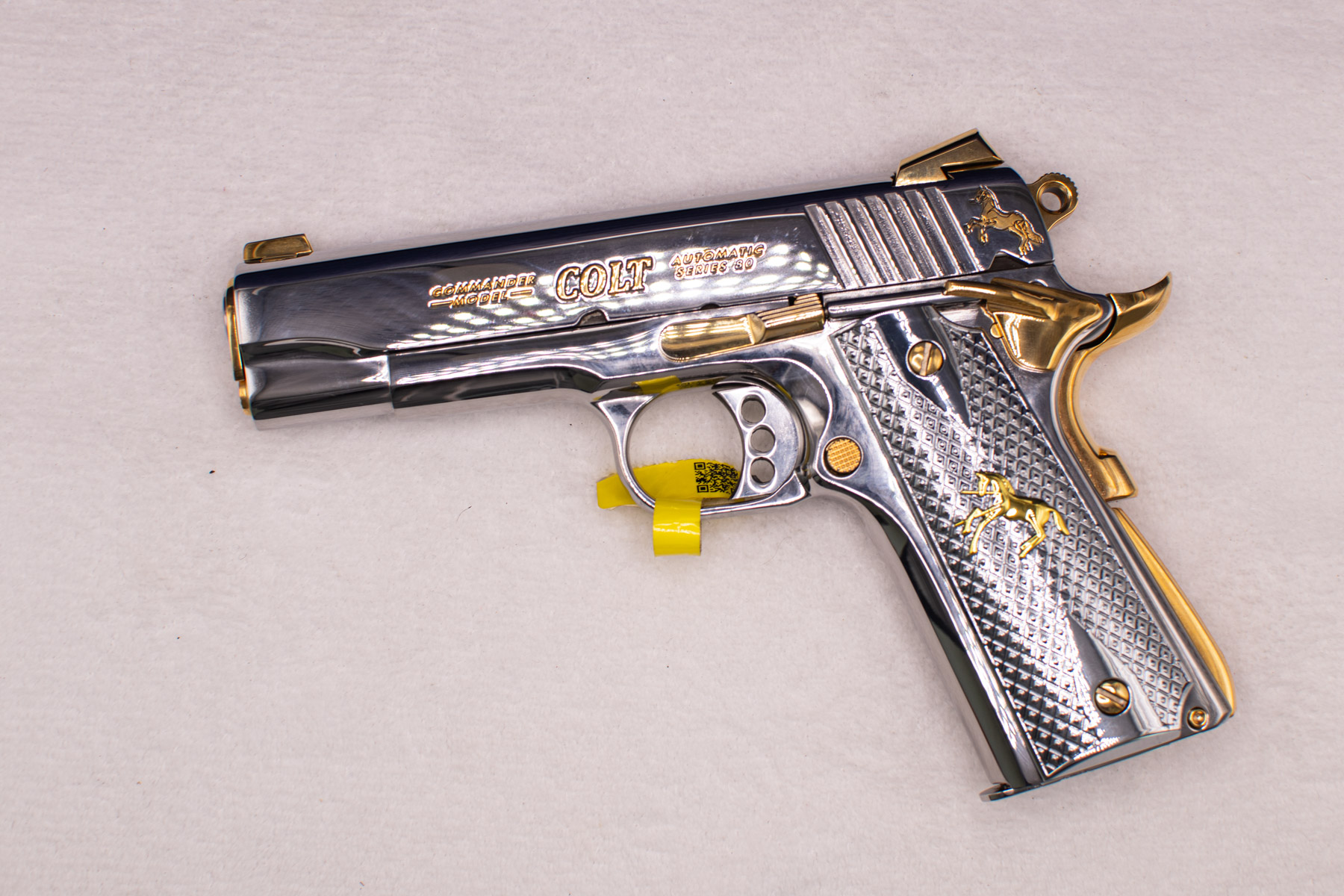 This one-of-a-kind Colt accentuated by 24-karat gold-plated details. The surface is finished with a high-gloss polish.