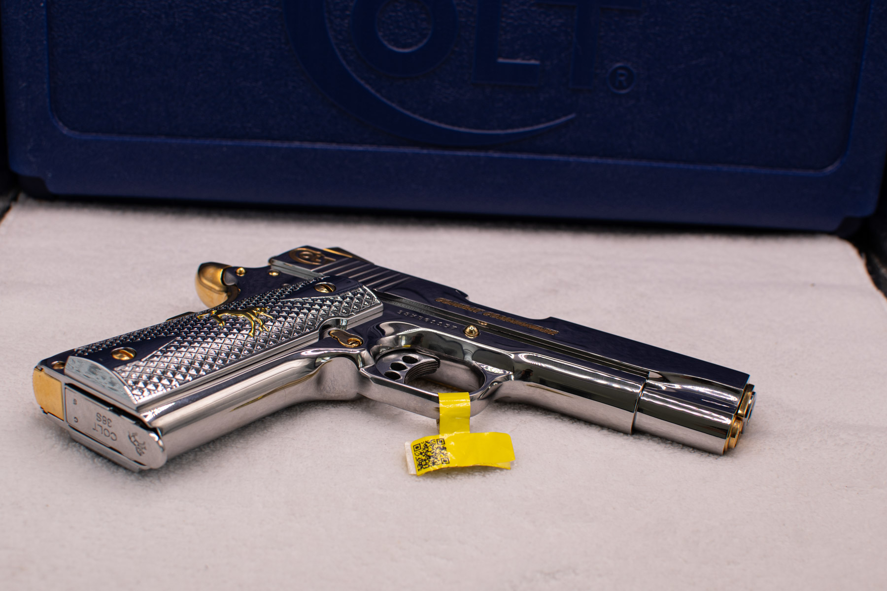 Every element has been crafted with precision: custom grips embossed with the Colt logo, and a magazine bottom adorned with a golden or high gloss finish. The result is not just a firearm, but a true work of art—a statement piece that will elevate and enrich any collector’s showcase.