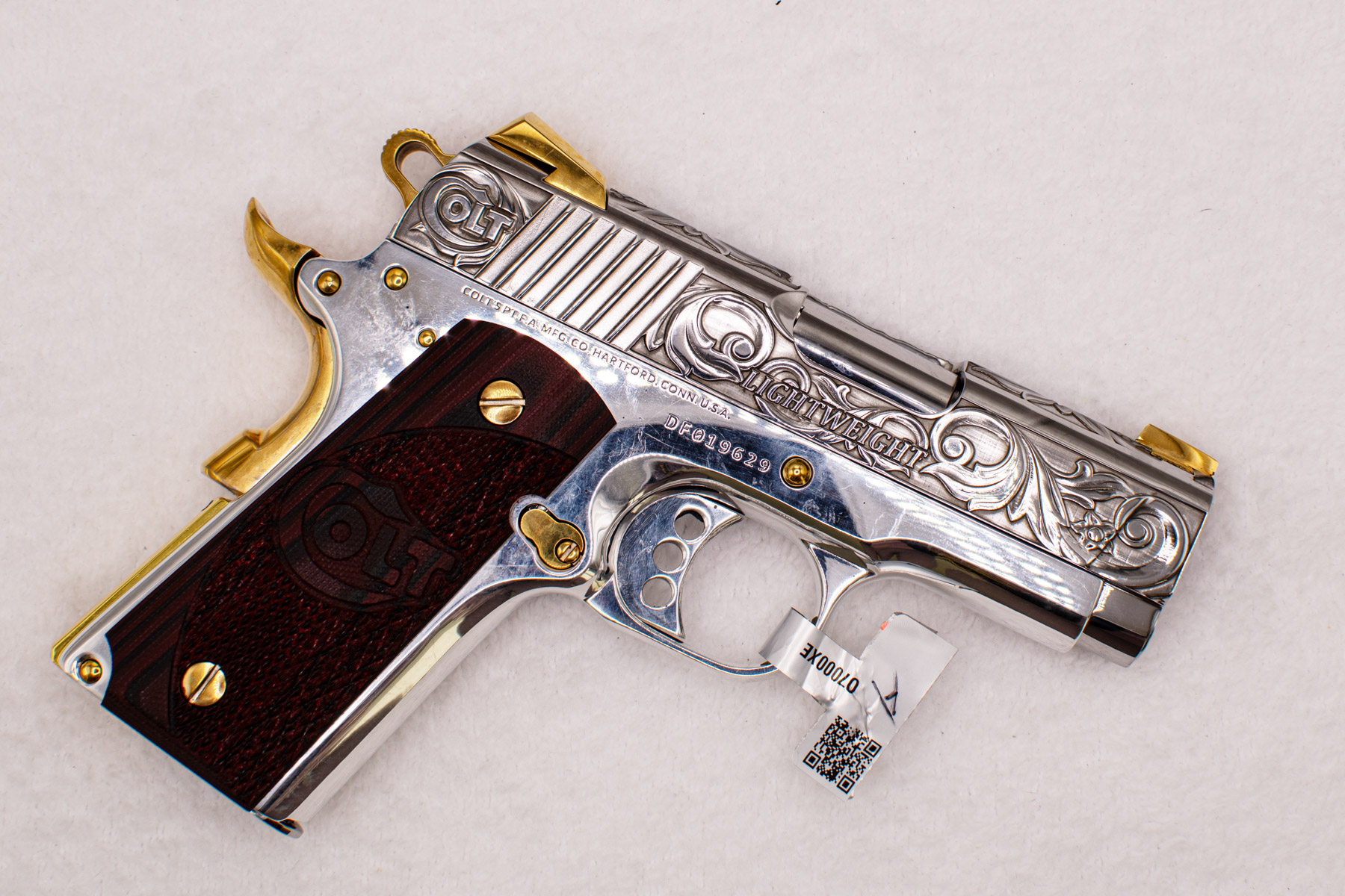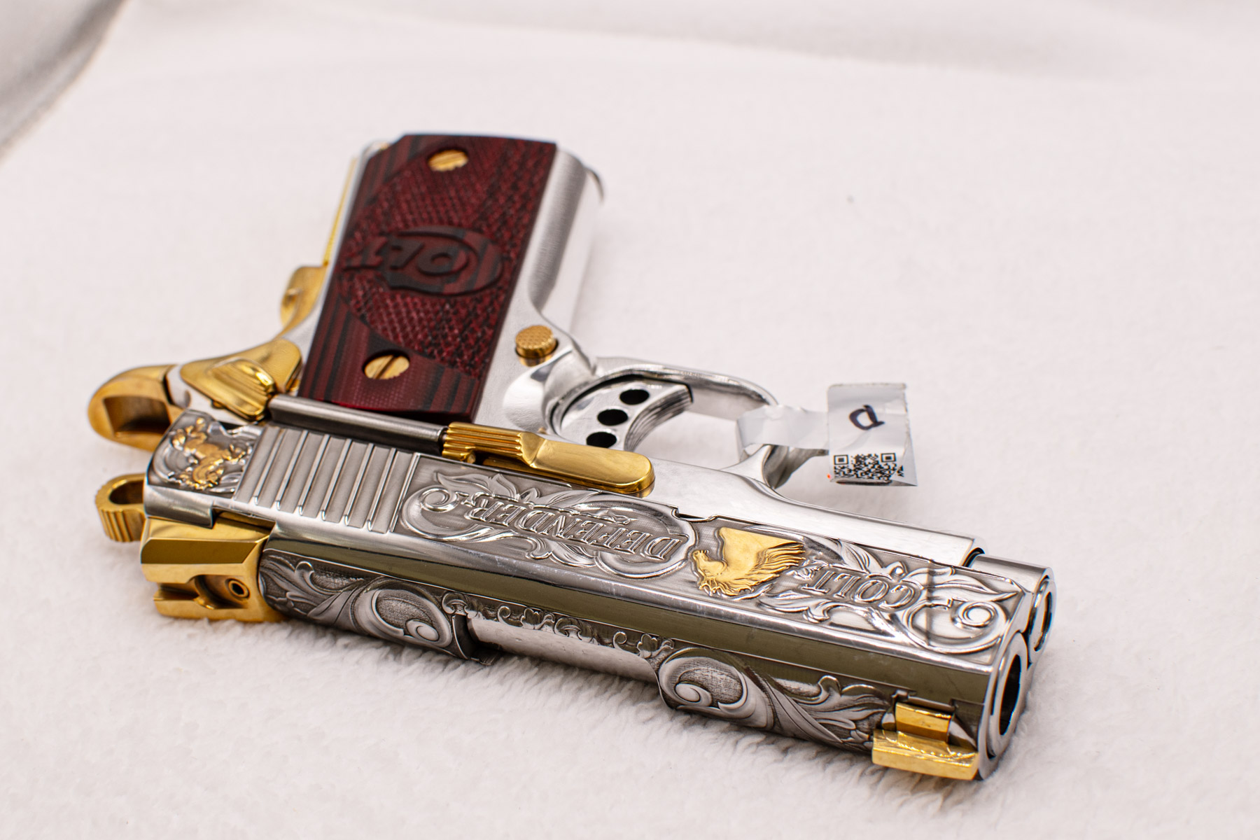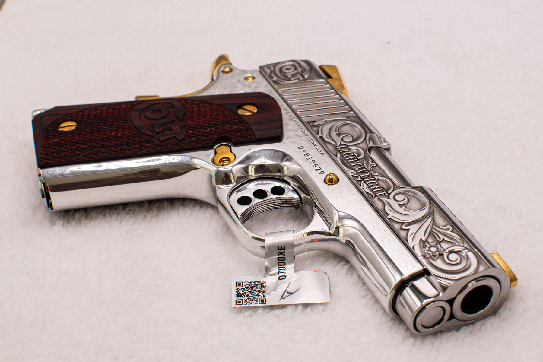 This exclusive Colt Defender is elevated to the level of fine art through its custom engraving and 24-karat gold-plated accents. The steel has been high-polished to a mirror finish.